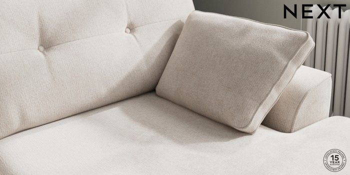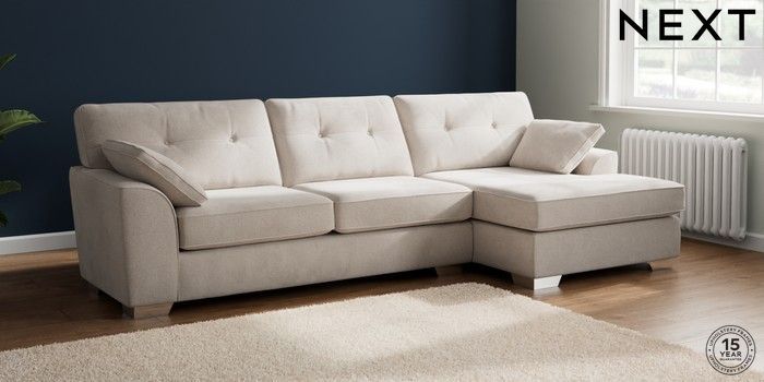 7.2.10 Buy Stamford Buttoned Back Large Sofa Chaise - Right Hand Chunky Chenille Oyster Large Square Angle - Chrome Metal from the Next UK online shop Click here to use our accessible website