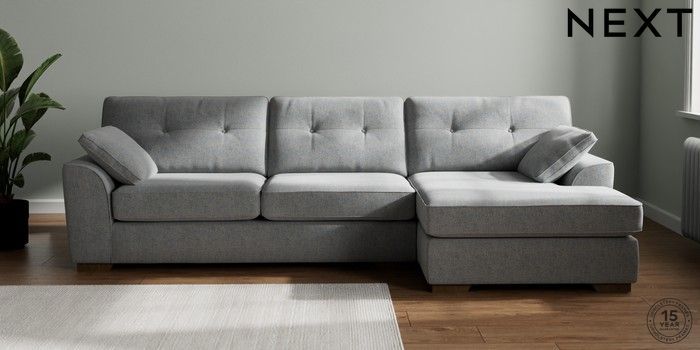 7.2.10 Buy Stamford Buttoned Back Large Sofa Chaise - Right Hand Chunky Marl Mid Grey Large Square Angle - Mid from the Next UK online shop Click here to use our accessible website