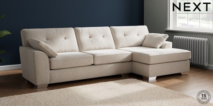 7.2.10 Buy Stamford Buttoned Back Large Sofa Chaise - Right Hand Chunky Marl Oyster Large Square Angle - Chrome Metal from the Next UK online shop Click here to use our accessible website