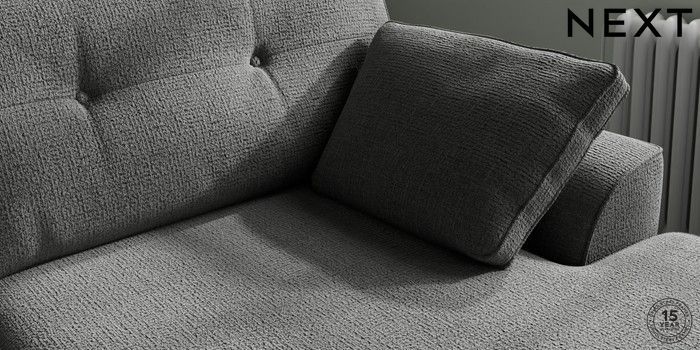 7.2.10 Buy Stamford Buttoned Back Large Sofa Chaise - Right Hand Chunky Texture Dark Grey Large Square Angle - Chrome Metal from the Next UK online shop Click here to use our accessible website
