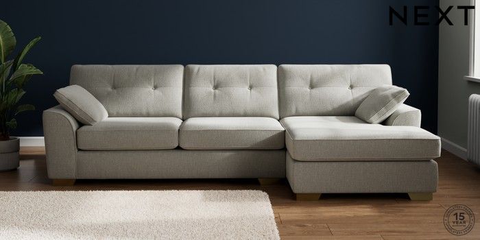 7.2.10 Buy Stamford Buttoned Back Large Sofa Chaise - Right Hand Chunky Texture Dove Large Square Angle - Brushed Brass from the Next UK online shop Click here to use our accessible website
