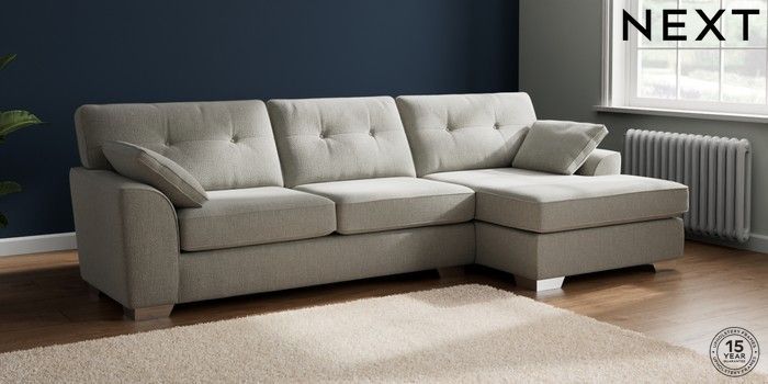7.2.10 Buy Stamford Buttoned Back Large Sofa Chaise - Right Hand Chunky Texture Dove Large Square Angle - Chrome Metal from the Next UK online shop Click here to use our accessible website