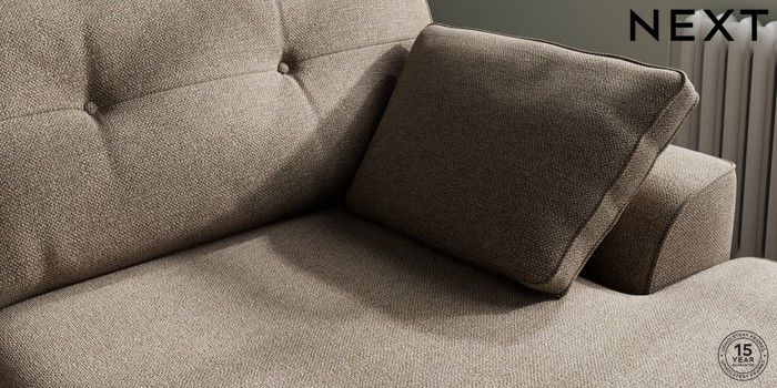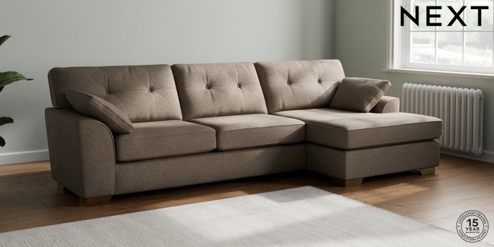 7.2.10 Buy Stamford Buttoned Back Large Sofa Chaise - Right Hand Chunky Weave Dark Natural Large Square Angle - Brushed Brass from the Next UK online shop Click here to use our accessible website