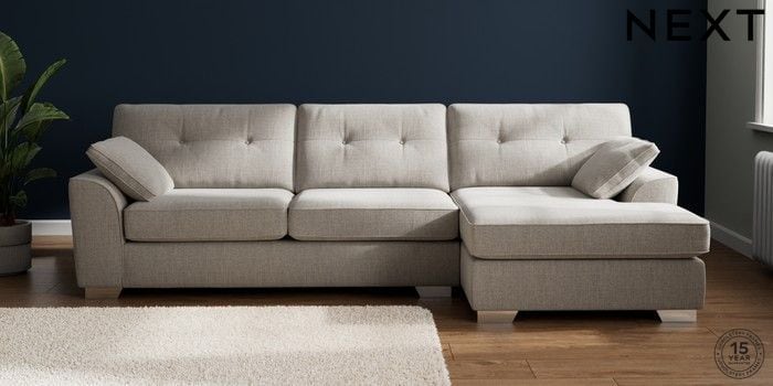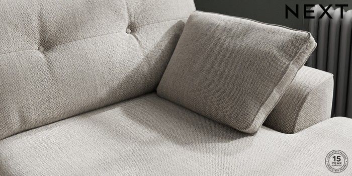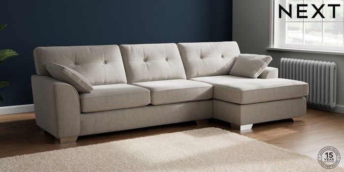 7.2.10 Buy Stamford Buttoned Back Large Sofa Chaise - Right Hand Chunky Weave Dove Grey Large Square Angle - Chrome Metal from the Next UK online shop Click here to use our accessible website