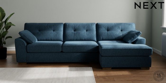 7.2.10 Buy Stamford Buttoned Back Large Sofa Chaise - Right Hand Cotswold Chenille Dark Blue Large Square Angle - Mid from the Next UK online shop Click here to use our accessible website
