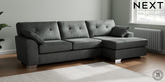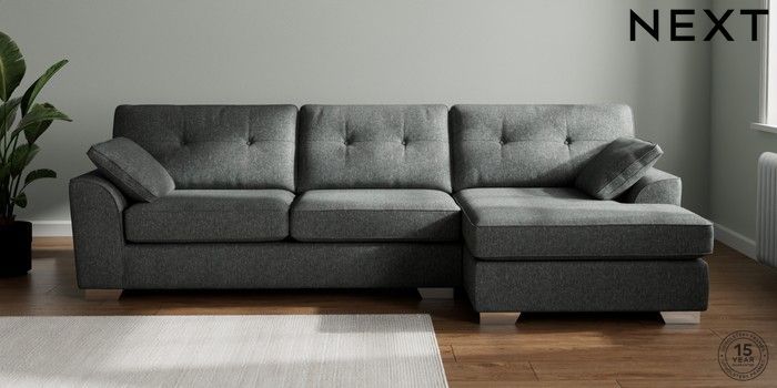 7.2.10 Buy Stamford Buttoned Back Large Sofa Chaise - Right Hand Cotswold Chenille Dark Grey Large Square Angle - Chrome Metal from the Next UK online shop Click here to use our accessible website