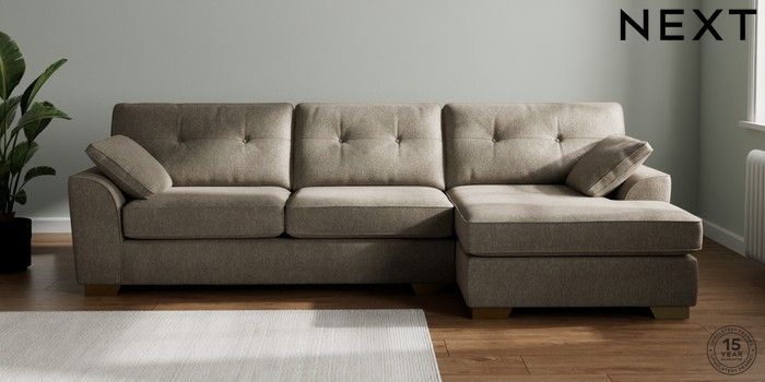 7.2.6 Buy Stamford Buttoned Back Large Sofa Chaise - Right Hand Cotswold Chenille Mid Mink Brown Large Square Angle - Brushed Brass from the Next UK online shop Click here to use our accessible website