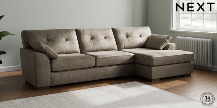 7.2.6 Buy Stamford Buttoned Back Large Sofa Chaise - Right Hand Cotswold Chenille Mid Mink Brown Large Square Angle - Mid from the Next UK online shop Click here to use our accessible website