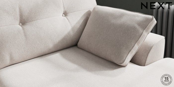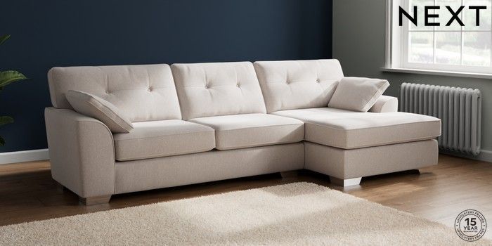 7.2.10 Buy Stamford Buttoned Back Large Sofa Chaise - Right Hand Cotswold Chenille Oyster Large Square Angle - Chrome Metal from the Next UK online shop Click here to use our accessible website