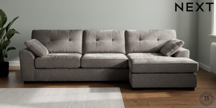 7.2.10 Buy Stamford Buttoned Back Large Sofa Chaise - Right Hand Distressed Velour French Grey Large Square Angle - Dark from the Next UK online shop Click here to use our accessible website