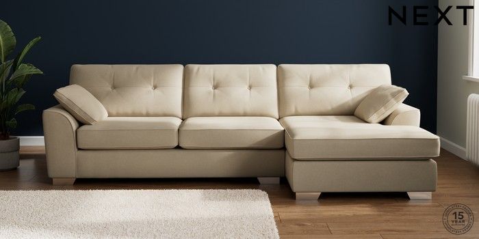 7.2.6 Buy Stamford Buttoned Back Large Sofa Chaise - Right Hand Natural Mix Light Natural Large Square Angle - Chrome Metal from the Next UK online shop Click here to use our accessible website