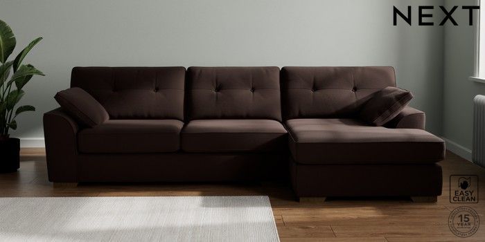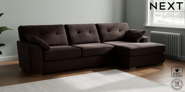 7.2.10 Buy Stamford Buttoned Back Large Sofa Chaise - Right Hand Fine Chenille Easy Clean Chocolate Brown Large Square Angle - Mid from the Next UK online shop Click here to use our accessible website