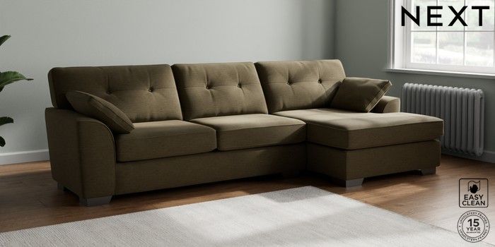 7.2.10 Buy Stamford Buttoned Back Large Sofa Chaise - Right Hand Fine Chenille Easy Clean Dark Moss Green Large Square Angle - Gunmetal from the Next UK online shop Click here to use our accessible website