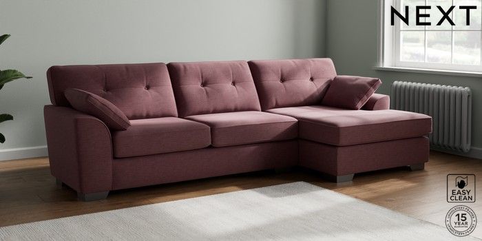 6.12.1 Buy Stamford Buttoned Back Large Sofa Chaise - Right Hand Fine Chenille Easy Clean Mid Mulberry Purple Large Square Angle - Gunmetal from the Next UK online shop Click here to use our accessible website