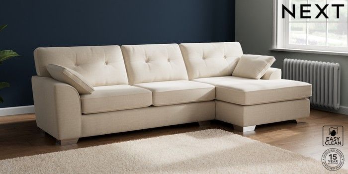 7.2.10 Buy Stamford Buttoned Back Large Sofa Chaise - Right Hand Fine Chenille Easy Clean Oyster Large Square Angle - Chrome Metal from the Next UK online shop Click here to use our accessible website