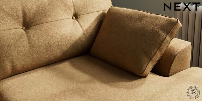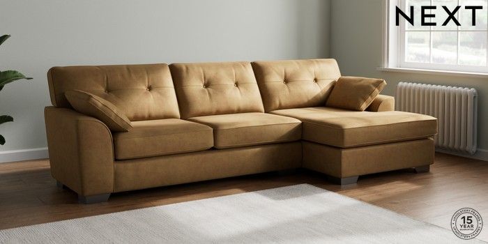 7.2.6 Buy Stamford Buttoned Back Large Sofa Chaise - Right Hand Luxe Chenille Honey Yellow Large Square Angle - Gunmetal from the Next UK online shop Click here to use our accessible website