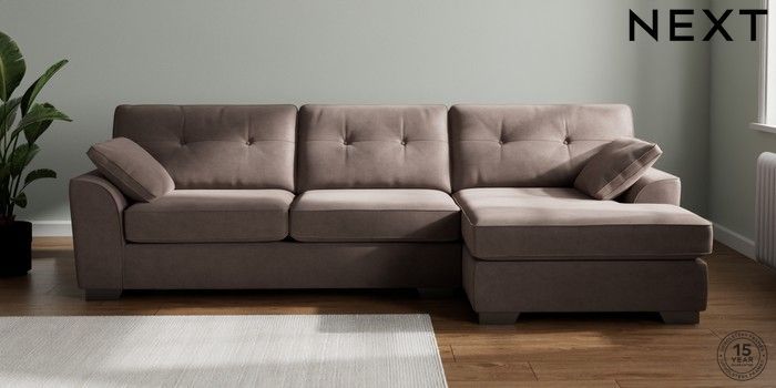 7.2.10 Buy Stamford Buttoned Back Large Sofa Chaise - Right Hand Luxe Chenille Mink Brown Large Square Angle - Gunmetal from the Next UK online shop Click here to use our accessible website