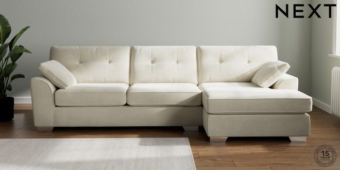 7.0.3 Buy Stamford Buttoned Back Large Sofa Chaise - Right Hand Luxe Chenille Oyster Large Square Angle - Chrome Metal from the Next UK online shop Click here to use our accessible website