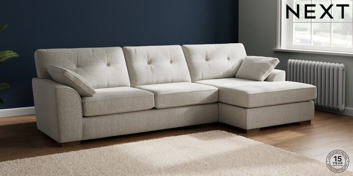7.2.6 Buy Stamford Buttoned Back Large Sofa Chaise - Right Hand Multi Weave Light Blue Large Square Angle - Mid from the Next UK online shop Click here to use our accessible website