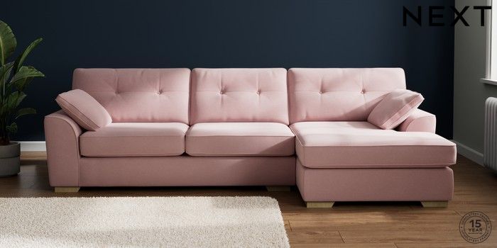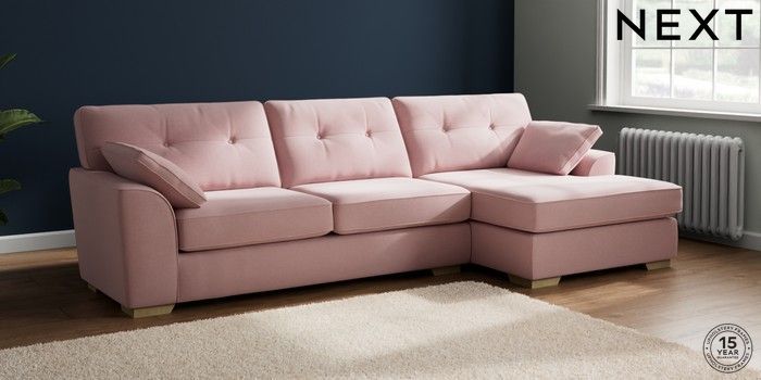 7.2.6 Buy Stamford Buttoned Back Large Sofa Chaise - Right Hand Natural Mix Light Rose Pink Large Square Angle - Light from the Next UK online shop Click here to use our accessible website
