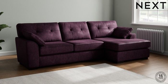 7.2.10 Buy Stamford Buttoned Back Large Sofa Chaise - Right Hand Plush Chenille Dark Plum Purple Large Square Angle - Dark from the Next UK online shop Click here to use our accessible website
