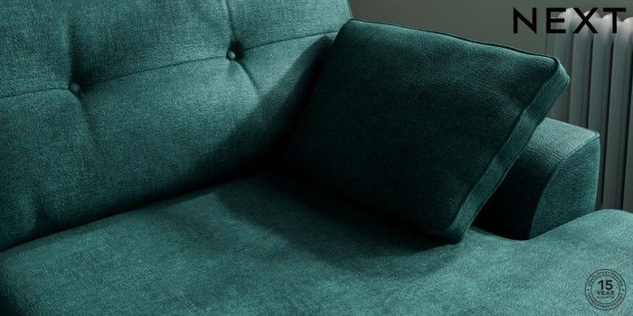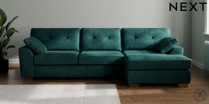 7.2.10 Buy Stamford Buttoned Back Large Sofa Chaise - Right Hand Plush Chenille Dark Teal Green Large Square Angle - Brushed Brass from the Next UK online shop Click here to use our accessible website