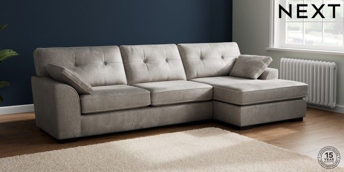 7.2.10 Buy Stamford Buttoned Back Large Sofa Chaise - Right Hand Plush Chenille Light Grey Large Square Angle - Dark from the Next UK online shop Click here to use our accessible website