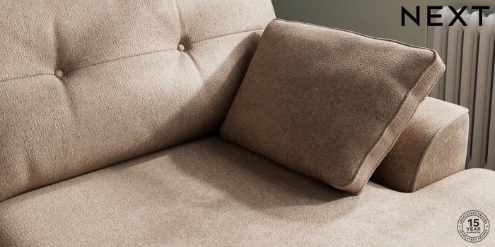 7.2.10 Buy Stamford Buttoned Back Large Sofa Chaise - Right Hand Plush Chenille Mid Natural Large Square Angle - Dark from the Next UK online shop Click here to use our accessible website