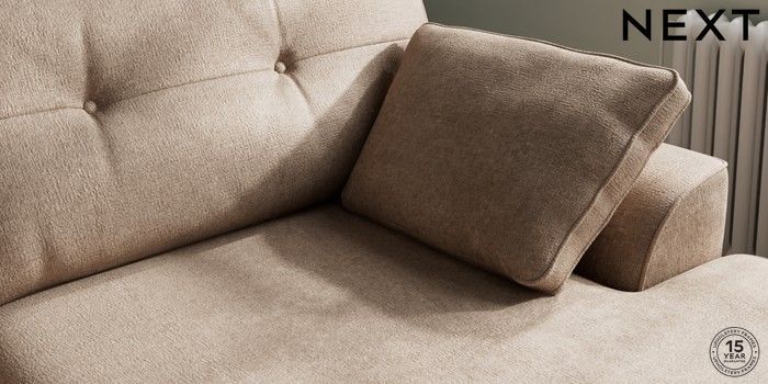 7.2.10 Buy Stamford Buttoned Back Large Sofa Chaise - Right Hand Plush Chenille Mid Natural Large Square Angle - Gunmetal from the Next UK online shop Click here to use our accessible website