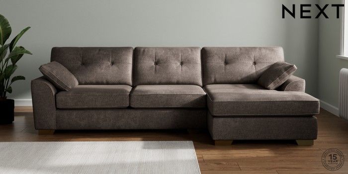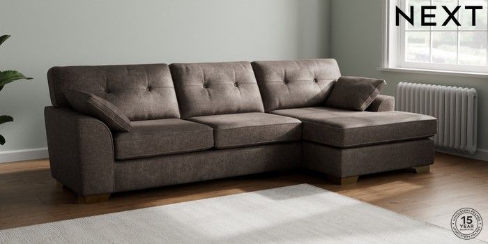7.2.10 Buy Stamford Buttoned Back Large Sofa Chaise - Right Hand Plush Chenille Mink Brown Large Square Angle - Brushed Brass from the Next UK online shop Click here to use our accessible website