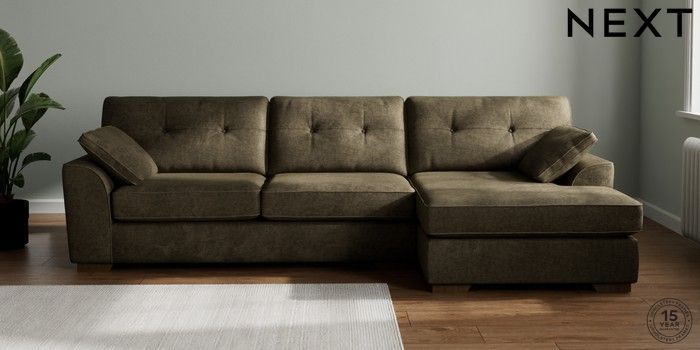 7.2.10 Buy Stamford Buttoned Back Large Sofa Chaise - Right Hand Plush Chenille Moss Green Large Square Angle - Mid from the Next UK online shop Click here to use our accessible website