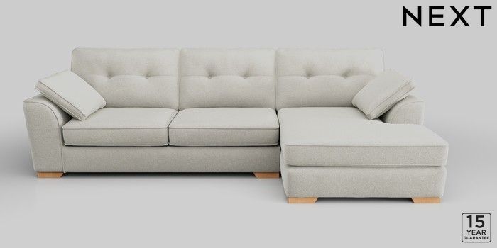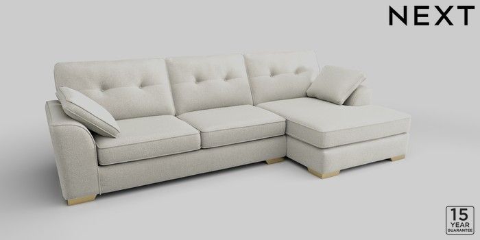 6.12.1 Buy Stamford Buttoned Back Large Sofa Chaise - Right Hand Plush Chenille Oyster Large Square Angle - Brushed Brass from the Next UK online shop Click here to use our accessible website