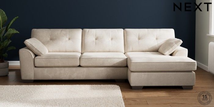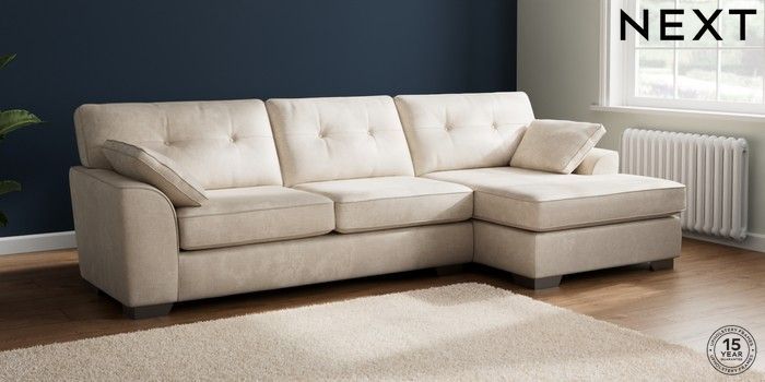 7.2.10 Buy Stamford Buttoned Back Large Sofa Chaise - Right Hand Plush Chenille Oyster Large Square Angle - Gunmetal from the Next UK online shop Click here to use our accessible website