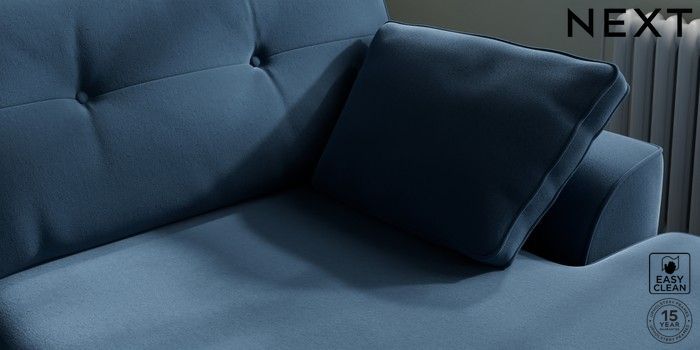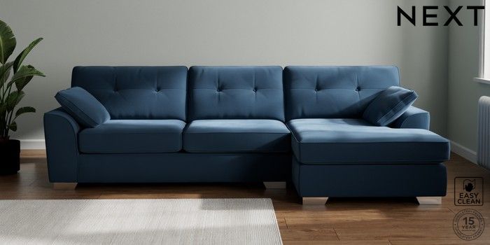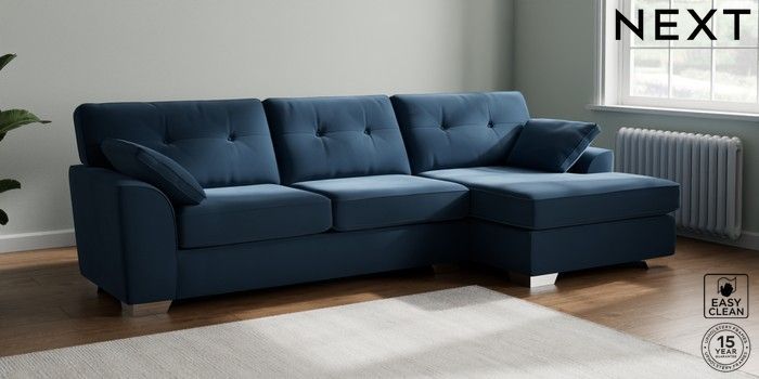7.2.10 Buy Stamford Buttoned Back Large Sofa Chaise - Right Hand Plush Velvet Easy Clean Airforce Blue Large Square Angle - Chrome Metal from the Next UK online shop Click here to use our accessible website