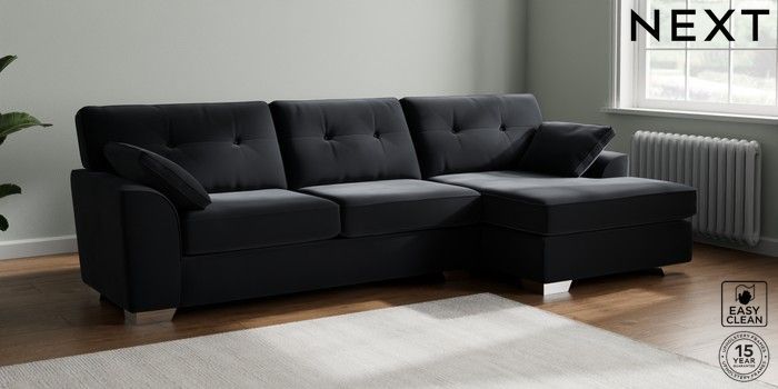 7.3.1 Buy Stamford Buttoned Back Large Sofa Chaise - Right Hand Plush Velvet Easy Clean Charcoal Grey Large Square Angle - Chrome Metal from the Next UK online shop Click here to use our accessible website