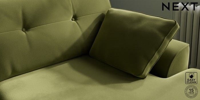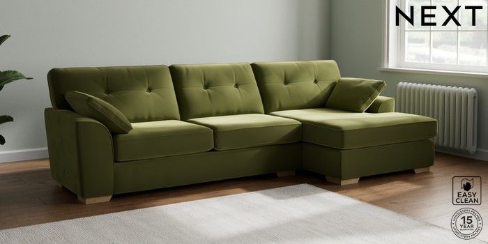 7.2.6 Buy Stamford Buttoned Back Large Sofa Chaise - Right Hand Plush Velvet Easy Clean Mid Olive Green Large Square Angle - Light from the Next UK online shop Click here to use our accessible website