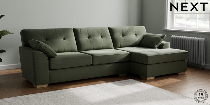 7.2.10 Buy Stamford Buttoned Back Large Sofa Chaise - Right Hand Relaxed Linen Look Dark Green Large Square Angle - Light from the Next UK online shop Click here to use our accessible website