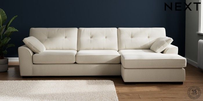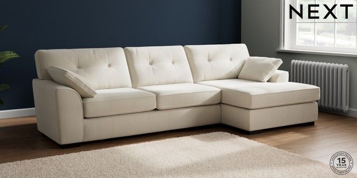 7.2.10 Buy Stamford Buttoned Back Large Sofa Chaise - Right Hand Relaxed Linen Look Oyster Large Square Angle - Dark from the Next UK online shop Click here to use our accessible website