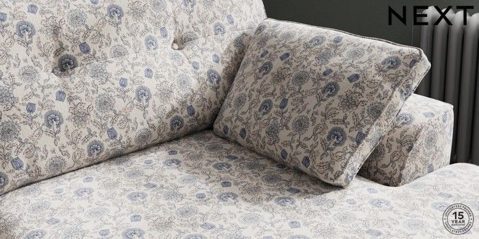 7.3.1 Buy Stamford Buttoned Back Large Sofa Chaise - Right Hand Relaxed Linen Look Print Woodblock Floral Blue Large Square Angle - Light from the Next UK online shop Click here to use our accessible website