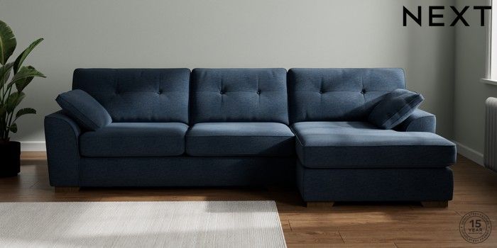 7.2.6 Buy Stamford Buttoned Back Large Sofa Chaise - Right Hand Ripple Chenille Dark Blue Large Square Angle - Mid from the Next UK online shop Click here to use our accessible website