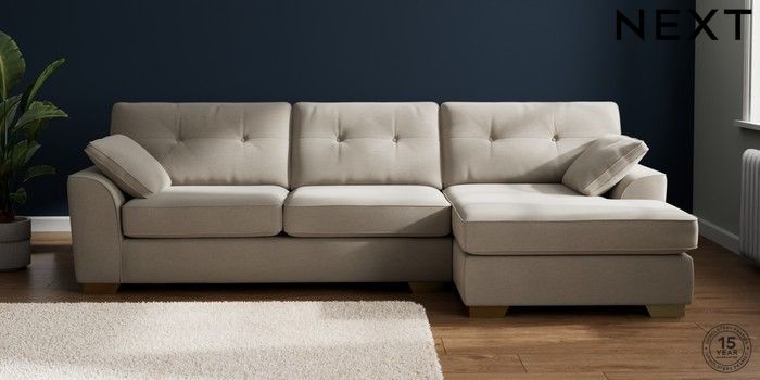 7.2.10 Buy Stamford Buttoned Back Large Sofa Chaise - Right Hand Ripple Chenille Light Natural Large Square Angle - Brushed Brass from the Next UK online shop Click here to use our accessible website