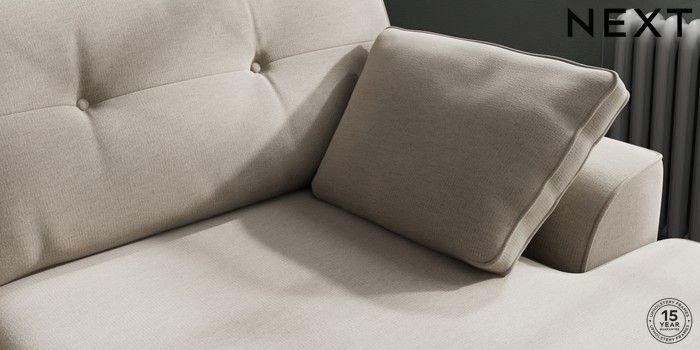 7.2.10 Buy Stamford Buttoned Back Large Sofa Chaise - Right Hand Ripple Chenille Light Natural Large Square Angle - Mid from the Next UK online shop Click here to use our accessible website