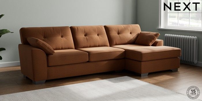 7.2.10 Buy Stamford Buttoned Back Large Sofa Chaise - Right Hand Ripple Chenille Mid Rust Brown Large Square Angle - Gunmetal from the Next UK online shop Click here to use our accessible website