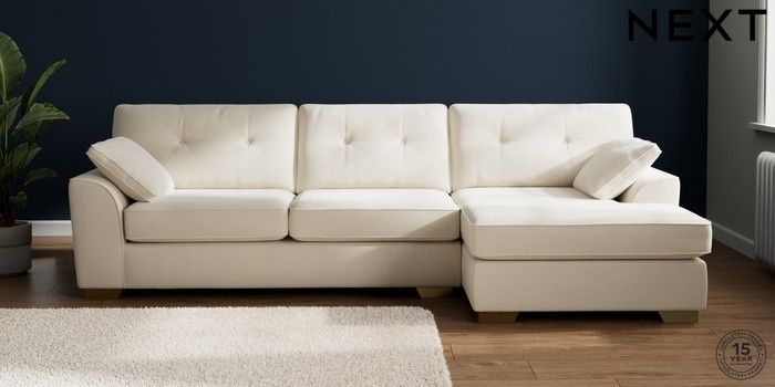 7.2.10 Buy Stamford Buttoned Back Large Sofa Chaise - Right Hand Ripple Chenille Oyster Large Square Angle - Brushed Brass from the Next UK online shop Click here to use our accessible website