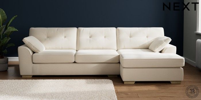 7.2.10 Buy Stamford Buttoned Back Large Sofa Chaise - Right Hand Ripple Chenille Oyster Large Square Angle - Light from the Next UK online shop Click here to use our accessible website