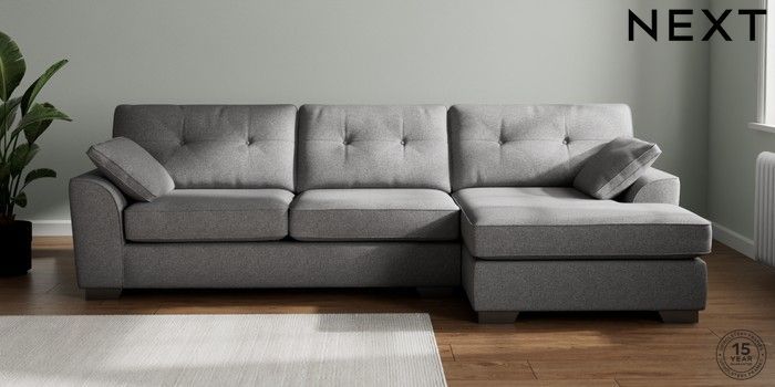 7.2.10 Buy Stamford Buttoned Back Large Sofa Chaise - Right Hand Studio Chenille Mid Grey Large Square Angle - Gunmetal from the Next UK online shop Click here to use our accessible website