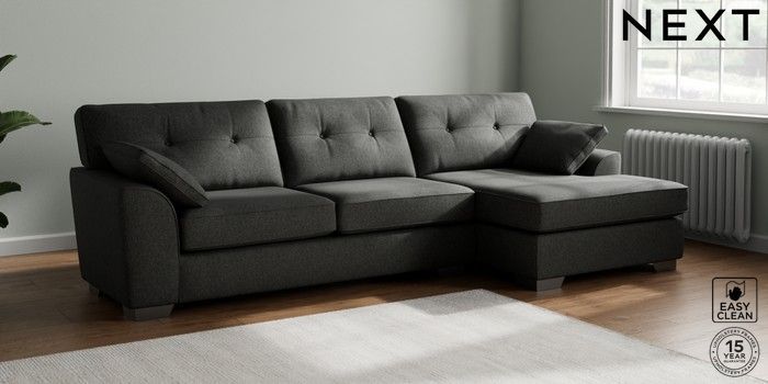 7.2.10 Buy Stamford Buttoned Back Large Sofa Chaise - Right Hand Tweedy Blend Easy Clean Charcoal Grey Large Square Angle - Gunmetal from the Next UK online shop Click here to use our accessible website