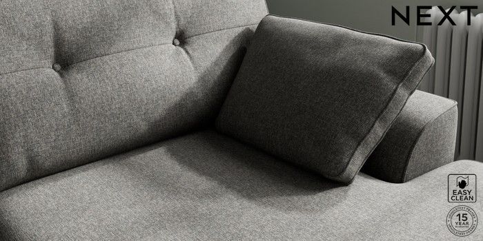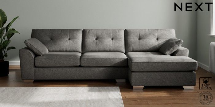 7.2.10 Buy Stamford Buttoned Back Large Sofa Chaise - Right Hand Tweedy Blend Easy Clean Dark Grey Large Square Angle - Chrome Metal from the Next UK online shop Click here to use our accessible website