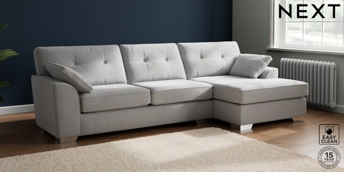 6.12.1 Buy Stamford Buttoned Back Large Sofa Chaise - Right Hand Tweedy Blend Easy Clean Light Silver Grey Large Square Angle - Chrome Metal from the Next UK online shop Click here to use our accessible website