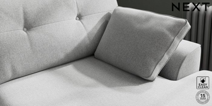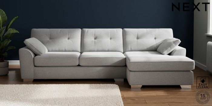 7.2.10 Buy Stamford Buttoned Back Large Sofa Chaise - Right Hand Tweedy Blend Easy Clean Light Silver Grey Large Square Angle - Chrome Metal from the Next UK online shop Click here to use our accessible website